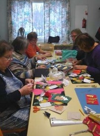 Iloinen joukko harrastekerholaisia - ja kortteja syntyy