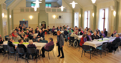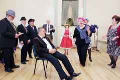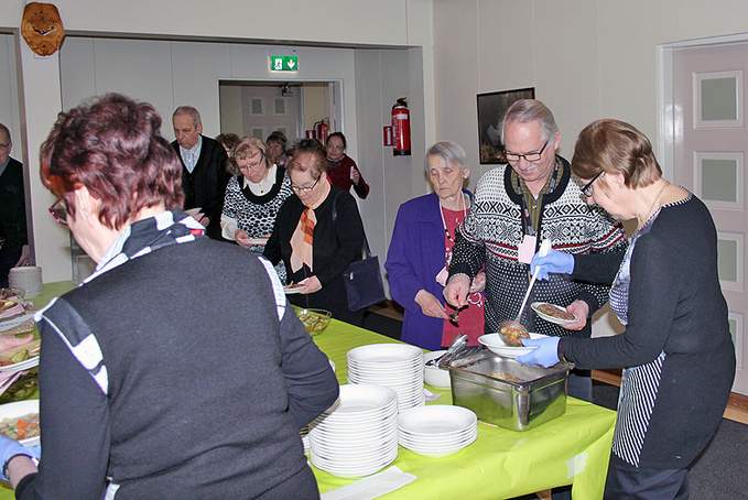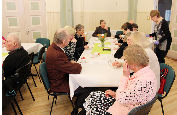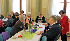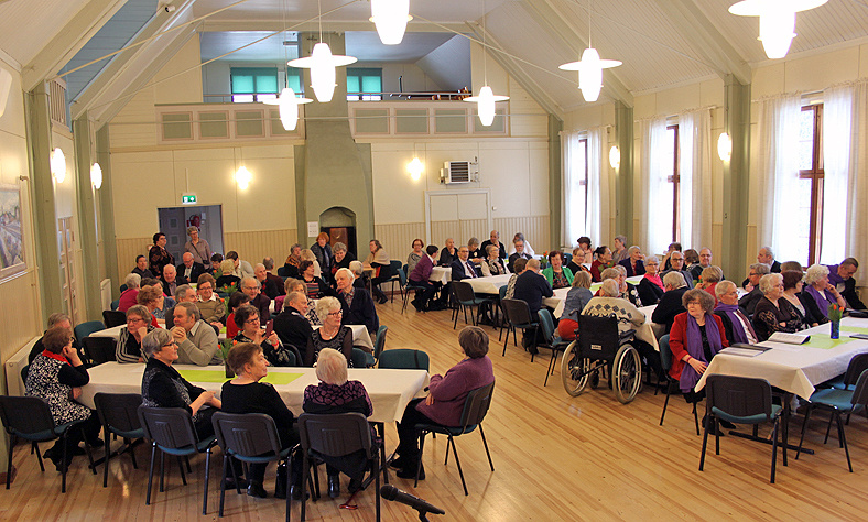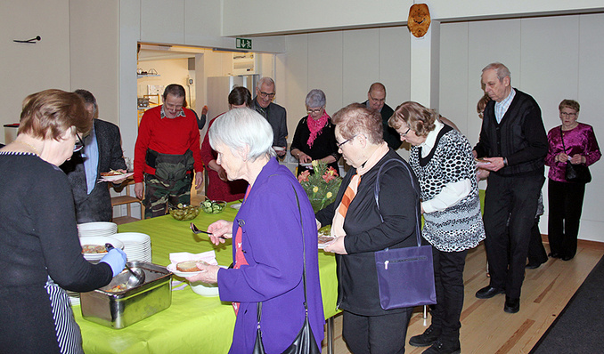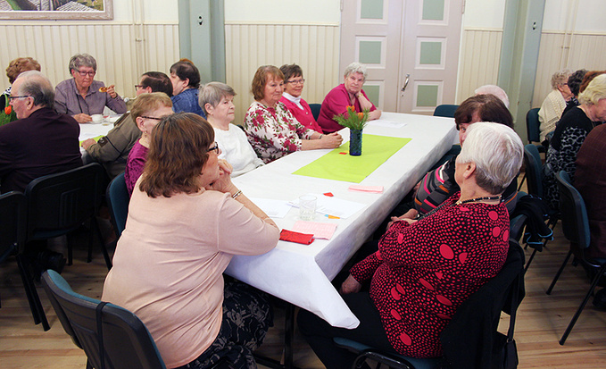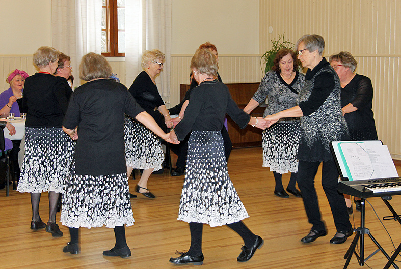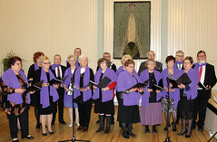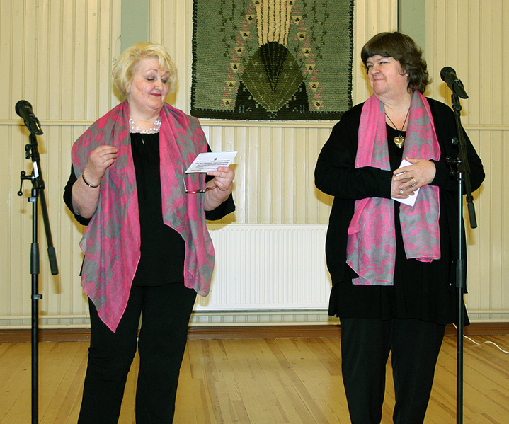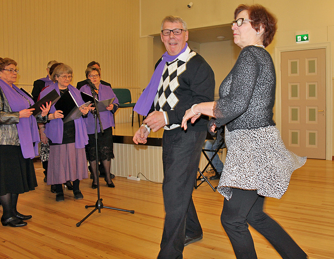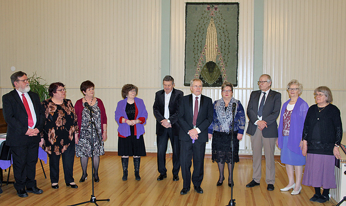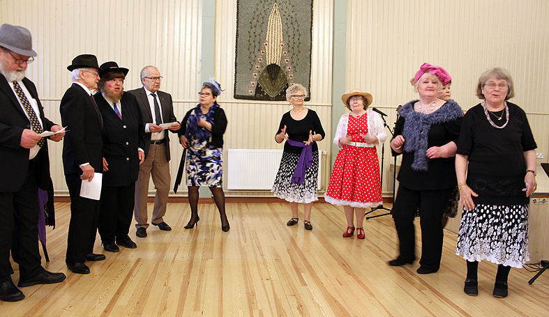 Kuoro lauloi enne puheenjohtajan puhetta. Puheenjohtajamme Mirjami Hakale kuvassa vasemmalla