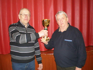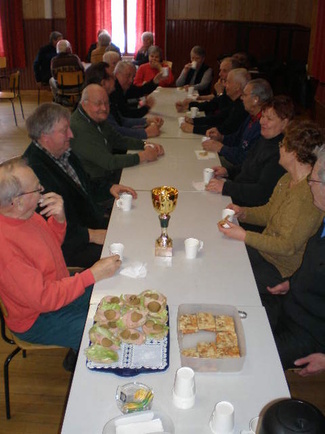 ![]() Boccia-ottelu 12.4.2012, puheenjohtajat kahvilla | ![]() Boccia-kisan voittajaksi selviýtyi yhdistyksemme joukkue. Kiertopalkinnon vastaanotti joukkueen kapteeni Veikko Sarlin. |