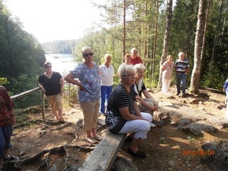 ![]() Retkeläisiä Torisevan kahvimajan portailla