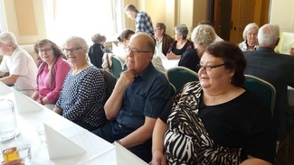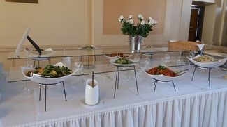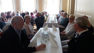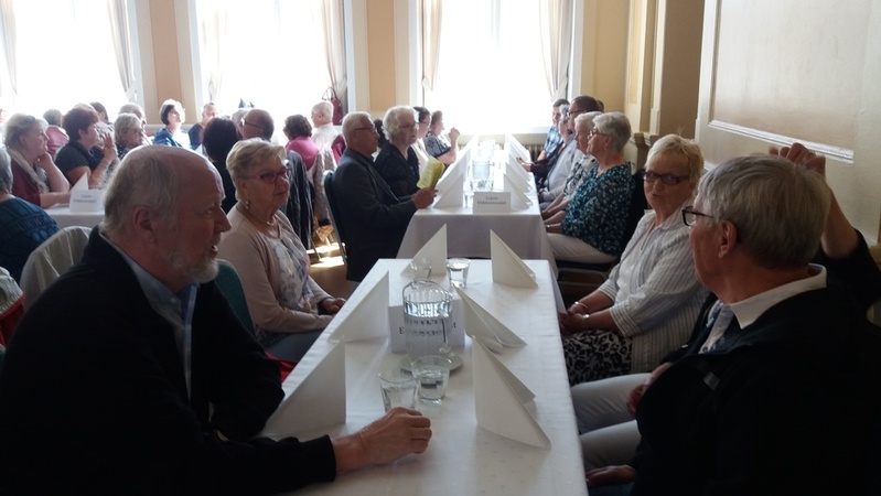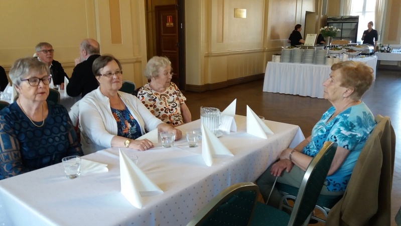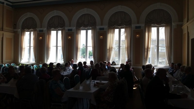 Aluksi nautimme maittavan lounaan Tampereen Komediateatterissa. Ruokaa odotellessa: