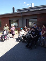 Eedilän asukkaiden viihdyttäminen ja ulkoilutus, kuvat Riitta Hiittu ja Anni Järvi