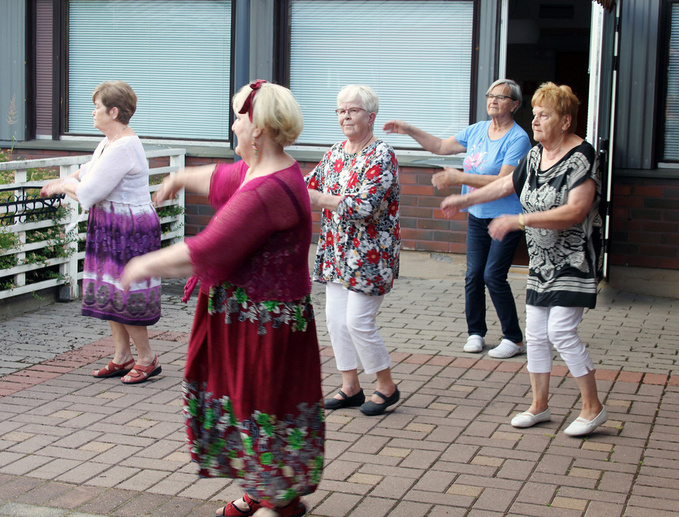 – Yleensä aloitamme tervehdyskäynnit Eedilässä alkukesästä, sitä mukaa kun sääolot sallivat ja porukka saadaan kokoon. Tänä vuonna aloitimme Juhannuksen jälkeen. Tähän harrastukseen on muodostunut yhdenlainen rinki, joka kokoontuu maanantaisin tänne asukkaita tervehtimään. Mukana on noin kymmenen yhdistyksen jäsentä.